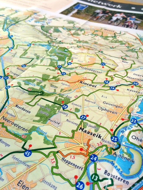Na de goed In 1995 werd door het Regionaal Landschap Kempen en Maasland het eerste fietsroutenetwerk geopend in het noordoosten van Limburg. De aanleg van het netwerk voldeed aan de gestelde economische verwachtingen en resulteerde in jaarlijks meer dan 700 000 fietsers in het Regionaal Landschap Kempen en Maasland. Vanaf de opening van het fietsknooppuntennetwerk in de Limburgse Kempen en Maasland toonden ook aangrenzende provincies interesse. Al snel verschenen ook in Nederlands Limburg, de Antwerpse Kempen, de provincie Luik en zelfs in het Duitse grensgebied fietsknooppuntennetwerken die aansloten op het Limburgse netwerk. Na ruim twintig jaar heeft het idee van een fietsroutenetwerk zijn bestaansrecht meer dan bewezen. In de gehele Benelux en zelfs in de rest van Europa liggen diverse plannen op de tekentafel of is de ontwikkeling van een fietsknooppuntennetwerk reeds in uitvoering. Voor de meeste fietsknooppunten netwerken zijn verschillende fietsknooppunten fietskaarten uitgebracht. Aanbieders ANWB en Falk hebben voor elke provincie in Nederland een uitgave van fietsknooppunten fietskaarten. Daarnaast zijn er per provincie uitgaves beschikbaar welke worden uitgegeven door regionale samenwerkingsverbanden. Voor België zijn er alleen uitgaves beschikbaar die worden uitgegeven door een provincie of door regionale samenwerkingsverbanden. Voor een volledig overzicht van alle beschikbare fietsknooppunten fietskaarten voor Nederland en België klikt u hier (bron: http://www.fietsknooppunten.eu/).